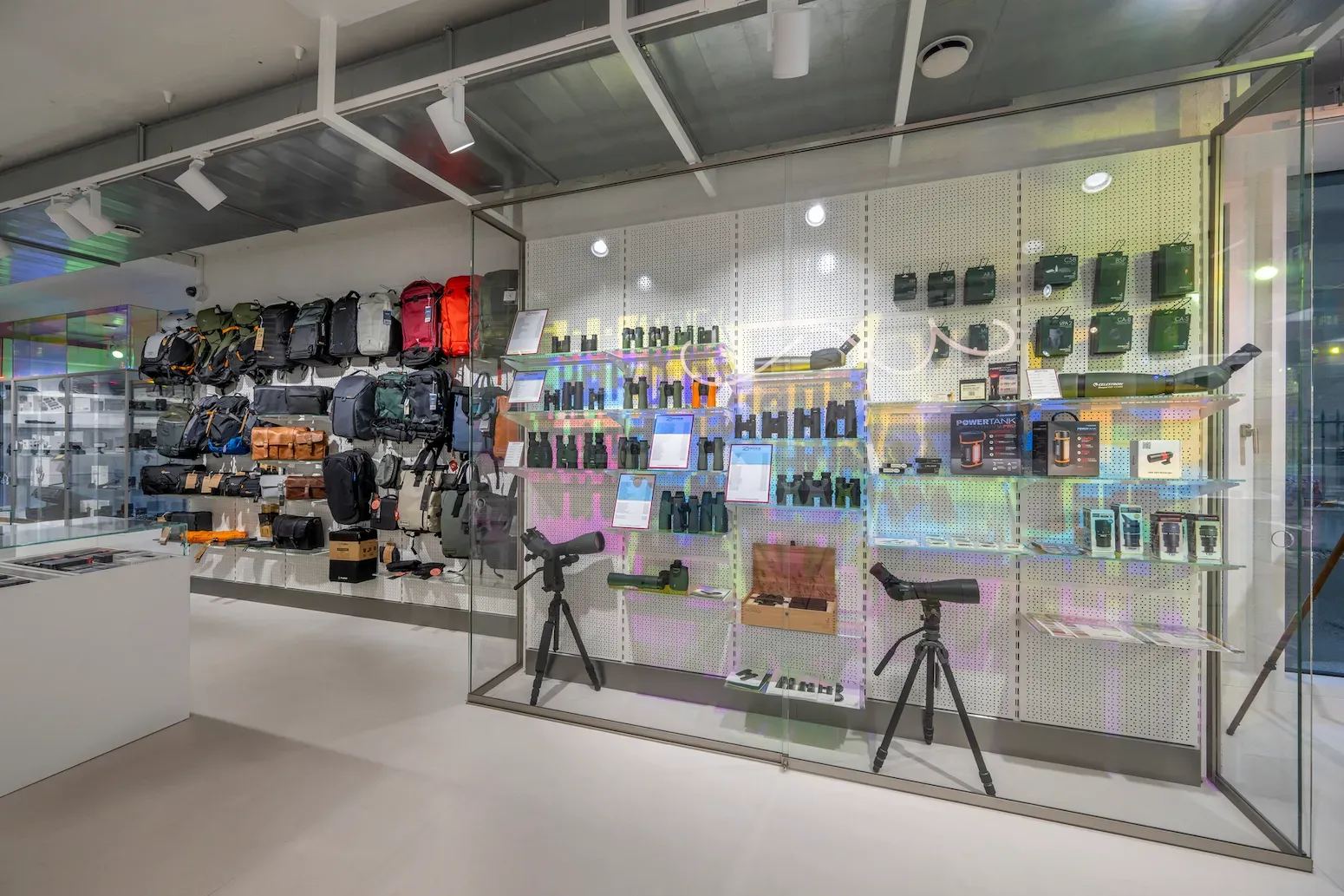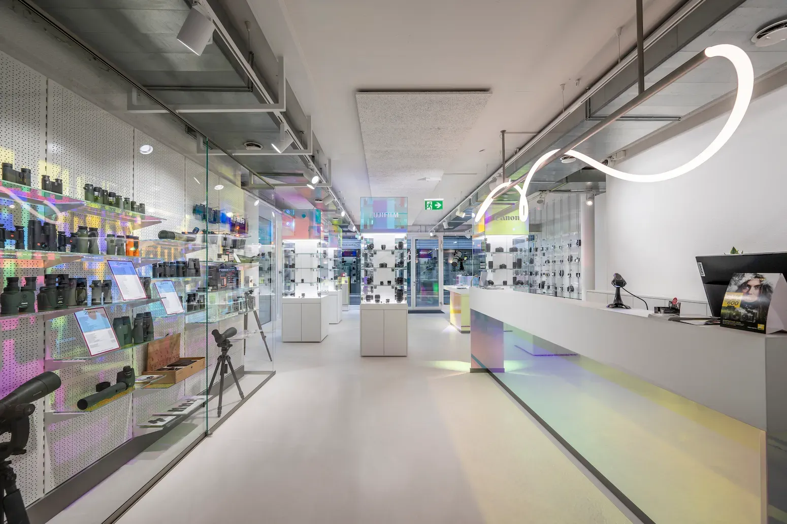 Mit dem neuen Standort verfolgte Photo Vision Zumstein ein klares Ziel: ein zeitgemässes Shopdesign, das Aufmerksamkeit erzeugt und Fotografie räumlich übersetzt. Im Colourful Lab wird Licht zum verbindenden Element zwischen Geschäft und Produkt: Glas, Metall und präzise Beleuchtung unterstreichen den Qualitätsanspruch – während die reduzierte Innenarchitektur die Ware bewusst zum Star macht.